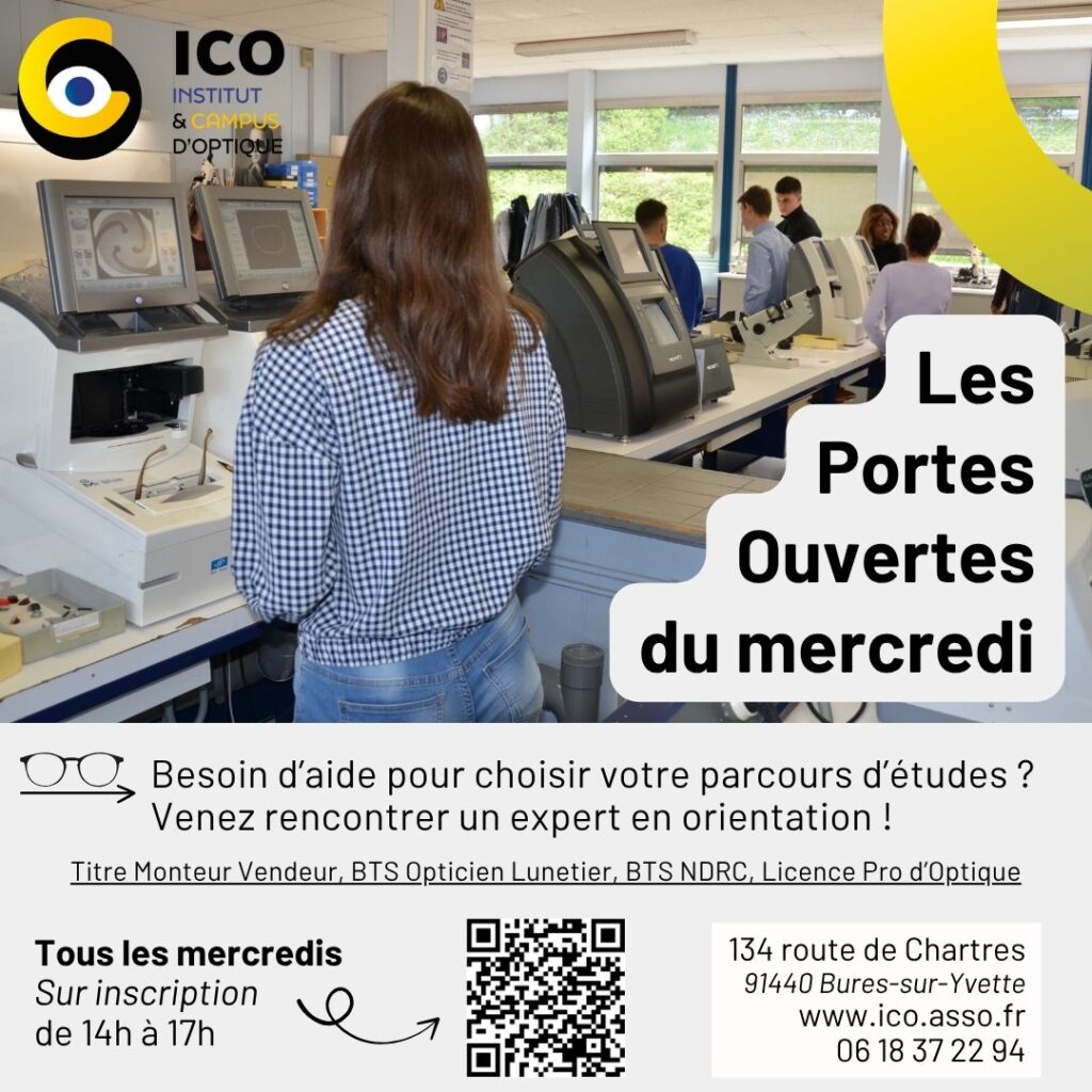 Chaque mercredi aprĂšs-midi de 14h Ă 17h, lâInstitut et Campus dâOptique (ICO) de Bures-sur-Yvette ouvre ses portes aux jeunes curieux de dĂ©couvrir les mĂ©tiers de lâoptique et de la relation client.